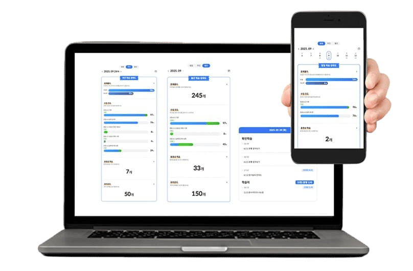 학생의 매일 학습 내용과 진도를 상세하게 확인할 수 있습니다.