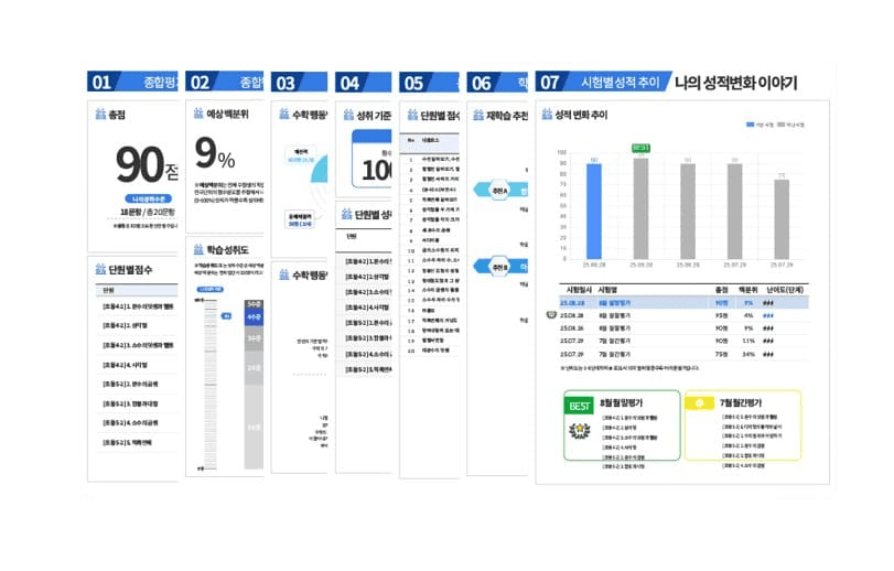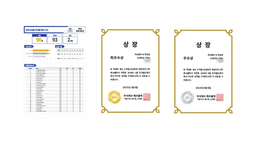 매일 모바일 학습 보고서를 보내드리면, 매월 시행되는 평가를 통해 전국 학생들과 학습 수준을 비교할 수 있습니다.